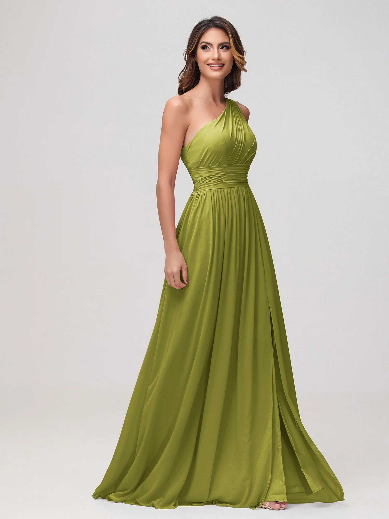 - Dieses Eine-Schulter ärmellose Chiffon-A-Linie-Kleid ist die perfekte Mischung aus Eleganz und Stil. Gefertigt aus leichtem Chiffon, fließt es wunderschön und unterstreicht Ihre anmutige Silhouette. Der bodenlange Saum sorgt für einen Hauch von Romantik und Raffinesse und ist ideal für jeden formellen Anlass.