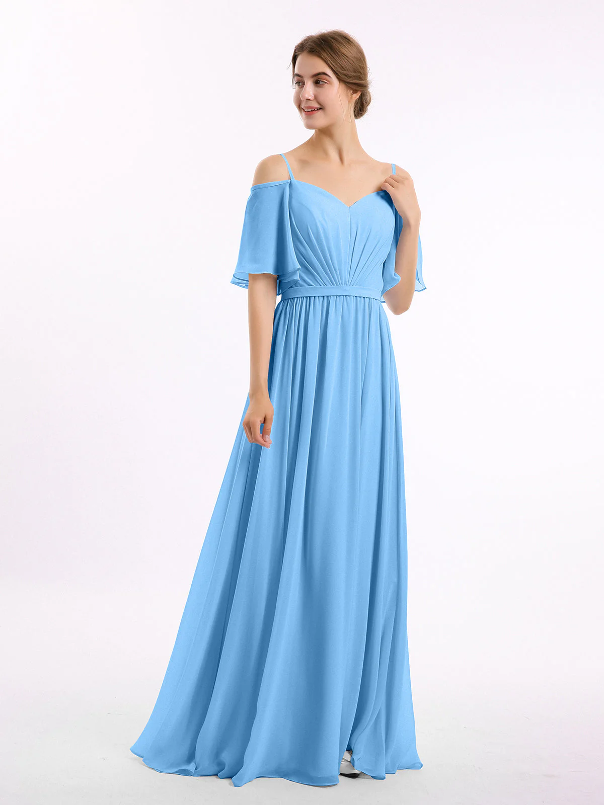Off-The-Schulter Spaghetti Träger Chiffon Kleid Blau