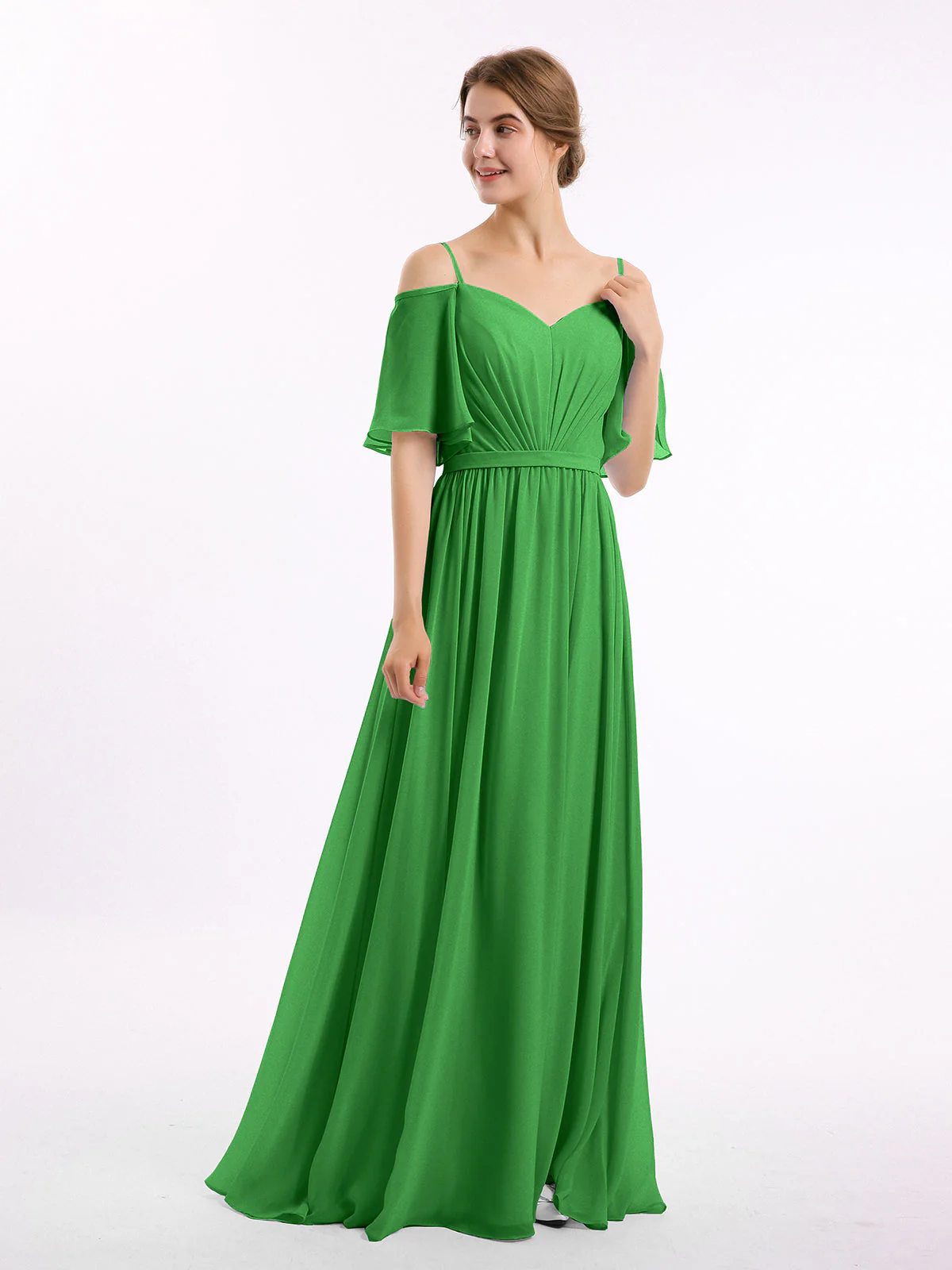 Off-The-Schulter Spaghetti Träger Chiffon Kleid Grün