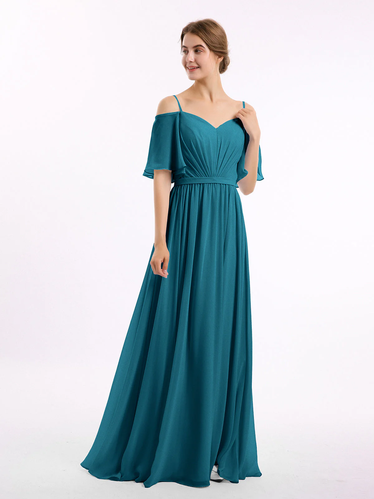 - Geri ist ein wunderschönes Off-The-Schulter Kleid aus hochwertigem Chiffon.