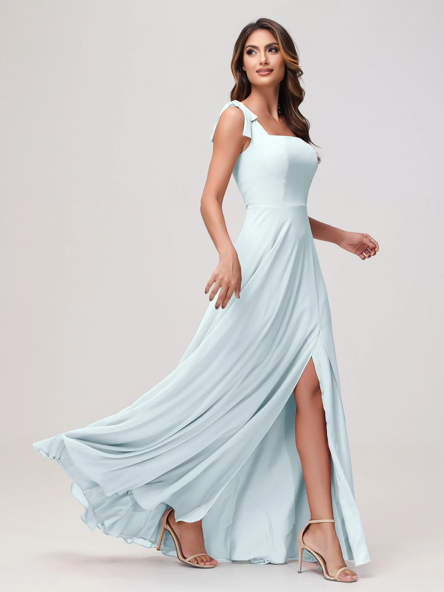 - Der quadratische Ausschnitt bringt Raffinesse, während das ärmellose Design es frisch und schick hält. Mit einem bodenlangen Saum und einem dezenten Seitenschlitz ermöglicht dieses Kleid anmutige Bewegung und einen Hauch von Charme. Die Rückseite verfügt über einen sicheren Reißverschluss für ein poliertes Finish, und die zarte Schleife Verzierung fügt ein charmantes Detail hinzu.