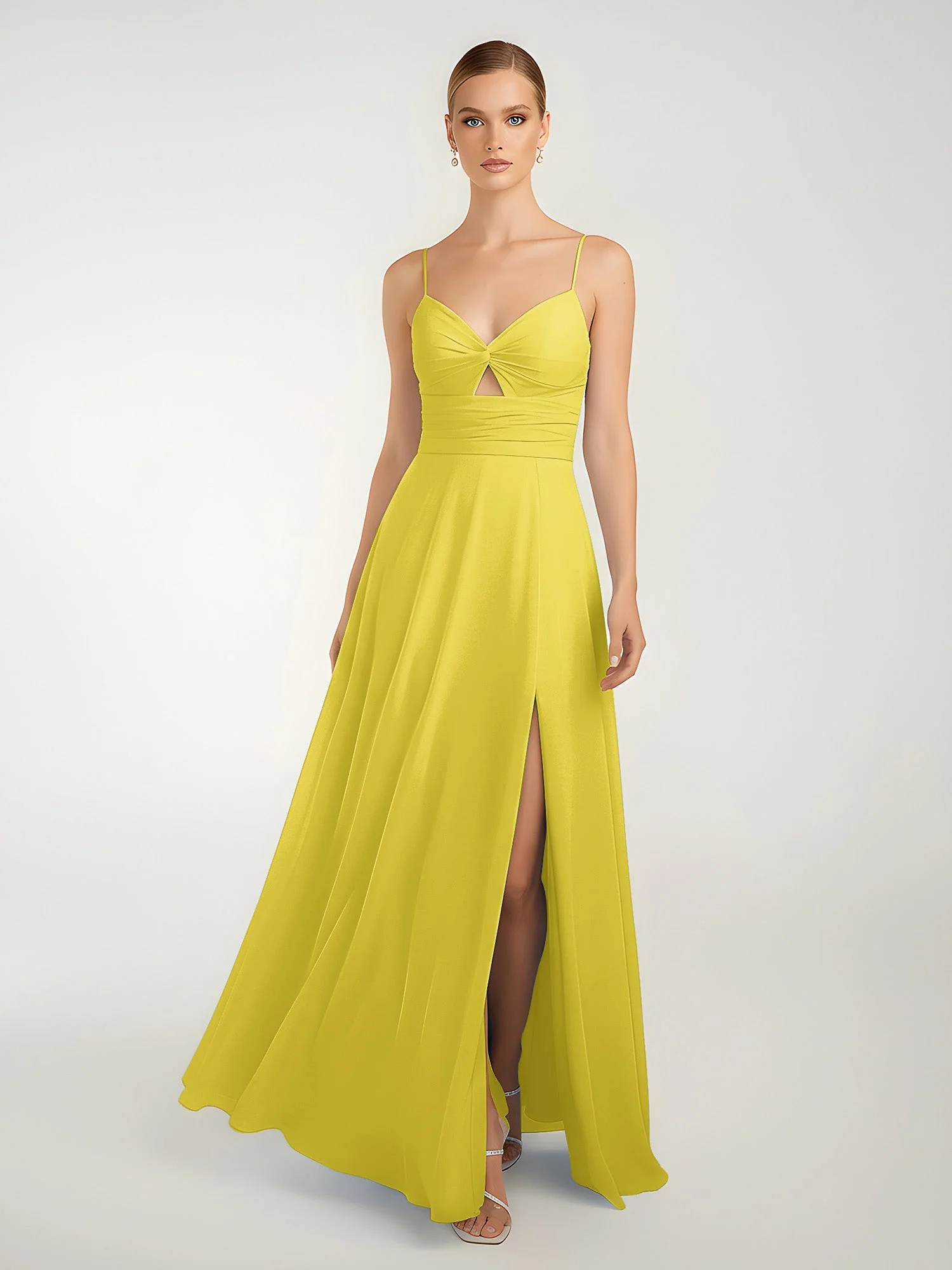 Chiffon A-Linie Gekreuzte Träger Kleid mit Schlitz Zitrone