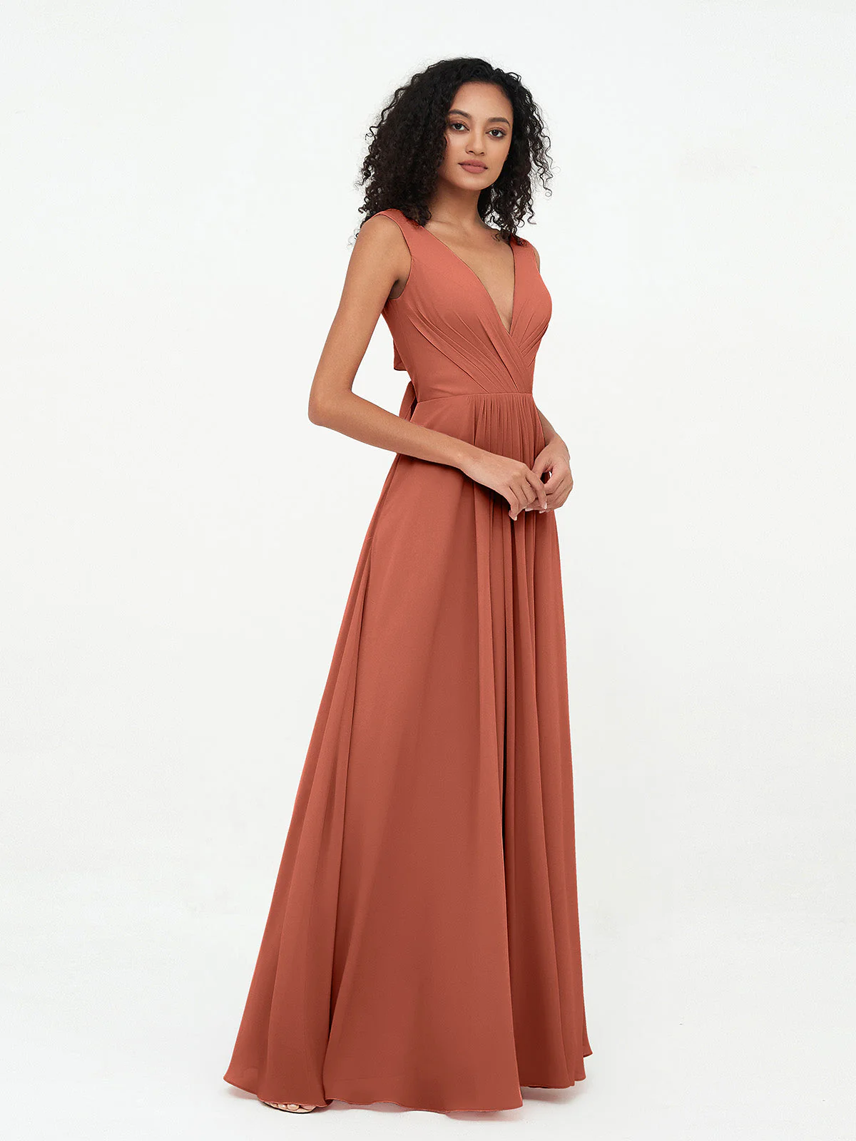 V-Ausschnitt Lang Chiffon Kleider mit Taschen Sale